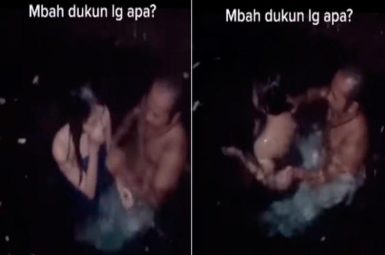 Sang pria yang diyakini adalah dukun ini bertelanjang dada dan hanya menggunakan bawahan ini terlihat sedang memandikan perempuan tersebut. Ia terlihat berulang kali membilas kepala sang perempuan dan beberapa kali mencelupkannya ke dalam air. Perempuan...