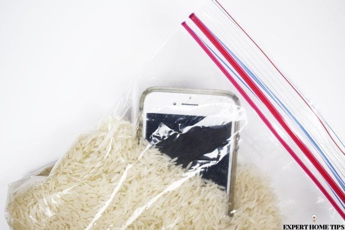 Beras tidak hanya digunakan untuk membuat penyegar udara, namun juga dapat digunakan untuk menyelamatkan handphone anda dari kerusakan. Jika anda tidak sengaja menjatuhkannya di toilet ataupun wetafel, trik ini dapat menyelamatkannya. Beras kering dapat menyerab air dari handphone anda. Sehingga penting untuk meletakkan handphone ada pada sekantong beras selama kurang lebih 48 jam. Juga pastikan untuk melepas baterai dan kartu SIM. Anda dapat membiarkannya kering didalamnya. Jangan pernah gunakan hair dryer atau pengering rambut untuk mengeringkan handphone anda. Udara yang panas buruk untuk elektronik dan hanya akan menyalurkan kelembaban ke bagian handphone anda yang lain yang akan lebih merusaknya!