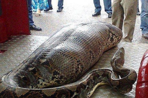 Seorang warga setempat mengatakan bahwa ia mengalahkan ular sanca batik sepanjang tujuh meter ini sendiri. Dalam kata-katanya, ular tersebut menghalangi jalan dua pejalan kaki, dan pria ini memutuskan untuk turun tangan dan membantu. Dia berhasil membunuh seekor ularnya, namun saat ini ia dirawat di rumah sakit karena luka yang dialami. Ular yang terbunuh ini tidak dibuang begitu saja atau dibakar. Daripada terbuang sia-sia, ular raksasa ini dimasak dan dimakan.